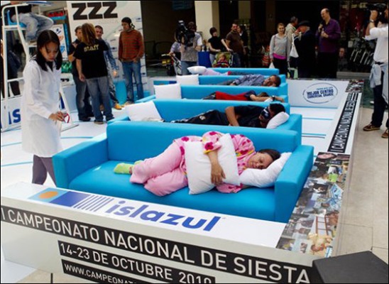 أ تمكن رجل اكوادوري يدعى " بيدرو سوريا لوبيز " و البالغ من العمر 62 عاما من الفوز بالمركز الاول في مسابقة النوم التي أقيمت في اسبانيا . و تمكن الرجل الستيني من الفوز بعد ان تمكن من الدخول في نوم عميق في مركز تسوق مزدحم في مدريد . المسابقة التي استمرت على مدار تسعة أيام تمثلت في الطلب من المتنافسين الخلود للنوم خلال فترة القيلولة وهي العادة التي يحرص عليها عدد كبير من الشعب الأسباني. وأعلنت الجهة المنظمة للمسابقة فوز لوبيز بعد أن تمكن من النوم لمدة 17 دقيقة من أصل 20 دقيقة هي مدة المسابقة. وقال المنظمون إن الفائز نام بعمق وبدأ الشخير بصوت عال خلال المسابقة التي نظمت الثلاثاء. وعبر الفائز عن سعادته بالفوز قائلا إن وجبة الغذاء التي تناولها قبل المسابقة ساعدته على الفوز. واستمرت المسابقة لتسعة أيام كان آخرها يوم السبت ويقول منظموها إنها تهدف للمحافظة على هذا التقليد العريق في الثقافة الاسبانية. وقال الناطق باسم الجهة المنظمة إن الناس يعيشون حالة من التوتر وهم غير قادرين على نوم القيلولة . | |